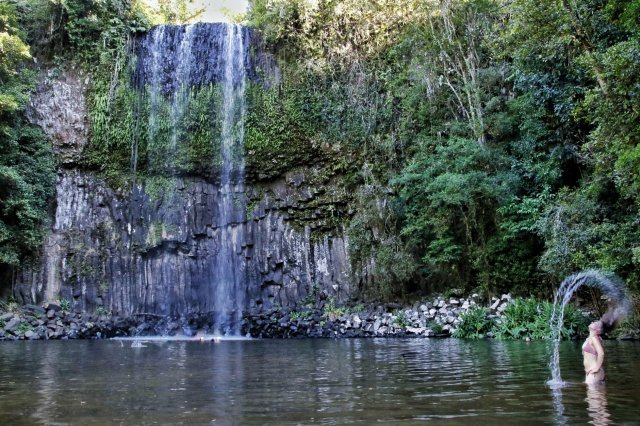 Doch der Ort ist nicht wegen seiner allgäu-ähnlichen Beschaffenheit oder der vielen Milchkühe bekannt, sondern wegen des am meisten fotografierten Wasserfalls Autraliens: den Millaa Millaa Falls. Denn hier wurde die berühmte Szene der Herbal Essences Shampoo Werbung gedreht, in der das lange Haar in einer Rückwärtsbewegung schwungvoll aus dem Wasser gezogen wird. Diesen Shot zu imitieren versuchten dort eigentlich alle, standen dafür sogar Schlange.