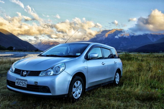 Erstmals gab es leider Probleme mit meinem Führerschein: zwar habe ich damit gerechnet, dass die Vermieter einen internationalen Führerschein sehen wollen und habe deswegen einen aus Deutschland mitgebracht, doch ist dieser vermutlich im Paket aus Sydney nach Hause gelandet. Oder zwischen Broschüren im Müll. Auf jeden Fall war er verschollen. Also musste das Verkehrsamt Neuseelands meinen deutschen Führerschein übersetzen: Für schlappe 59$ und 1h Wartezeit kann man sich diesen Luxus gönnen. Doch dann wars soweit: ich konnte in den – Kombi – Nissan Wingroad einsteigen und losfahren. Knappe 200.000km sind bereits auf dem Tacho, seit ca. 7 Jahren in der Flotte von Apex Rental Cars, dennoch macht Rüdiger einen ganz guten Eindruck.