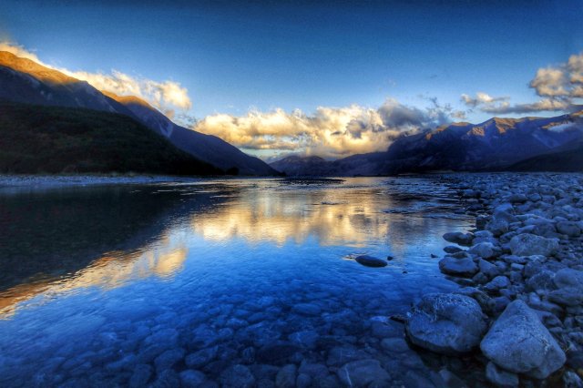 Waren diese Erledigungen alle erledigt, ging es Richtung Arthurs Pass. Auf dem Weg gab es schon die eine oder andere Aussicht zu genießen, doch das Highlight des Tages war dann die DOC Campsite Klondyke Corner zum Sonnenuntergang: