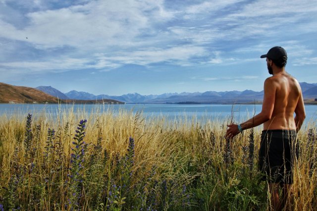 Noch am Abend bin ich am Lake Tekapo, dem zweitgrößten See des Mackenzie Basins, angekommen. Überraschenderweise hat sich auch das Wetter wieder gebessert, sodass vor Ort tatsächlich alles in Sonnenuntergangsfarben getaucht war. Schon jetzt war mir klar: dank des türkisen Wassers, der vielen Blumen, der sagenhaften Aussicht sowie der gastfreundlichen Atmossphäre ist dieser See vermutlich einer der schönste Orte dieser Welt.
