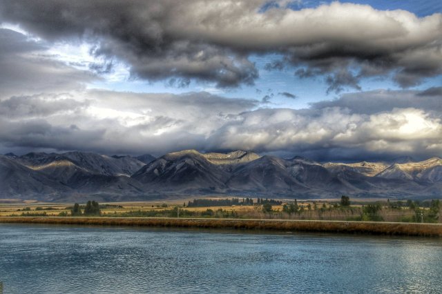 Tag fünf der Reise begann mit Regen. Glücklicherweise kann ich von meiner Matratze mit nur wenig Verrenkung auf den Fahrersitz schlupfen, sodass die morgendliche Kälte und deren Regen mir nichts anhaben konnten. Wie bereits am Vorabend besprochen haben nun Lisa mit ihrem Louis und ich mit Rüdiger einen Konvoi gebildet (Der aufmerksame Leser weiß, dass es insgesamt trotz vier Namen nur zwei Menschen sind). Das schlechte Wetter hinter uns gelassen stoppten wir zum ersten mal kurz vor Twizel bei den Feldern von Pelennor/Rohans, einer der vielen Drehorte von Herr der Ringe: