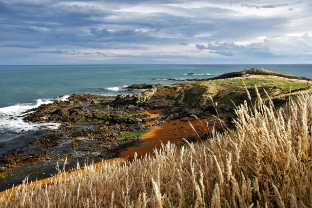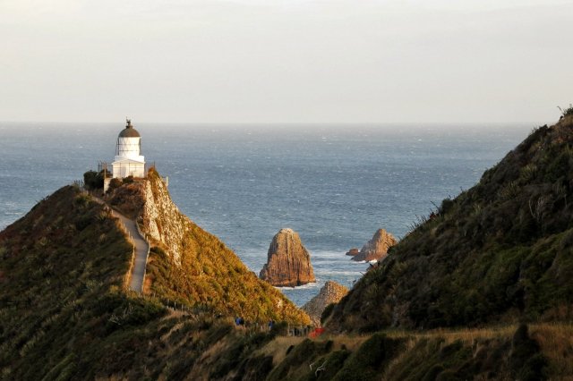 Wegen des aufkommenden Regens, der Tatsache, dass wir bereits Pinguine gesehen hatten und dass wir irgendwie weiter wollten, fuhren wir auch zügig weiter: zu einem Campingplatz in den Catlins. Hier zog es mich für den stürmischen Sonnenuntergang zum Nuggetpoint Lighthouse…