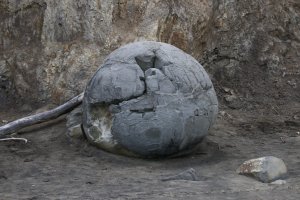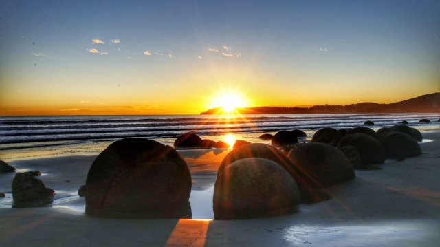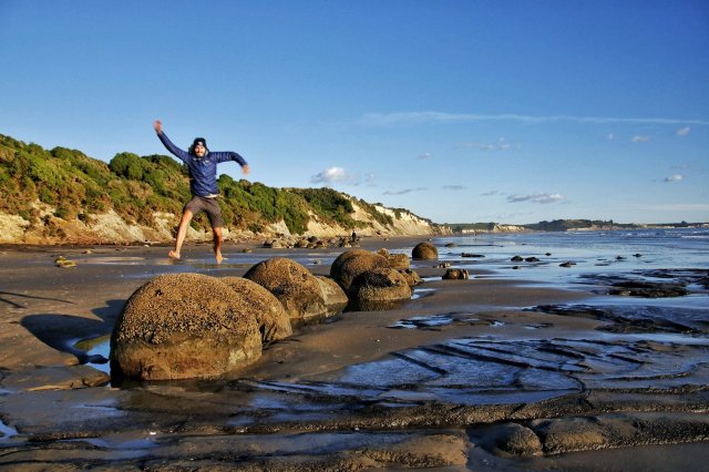 Doch bevor wir die Campsite aufsuchten, statteten wir den Moreaki Boulders einen kurzen Besuch ab. Diese kleinen runden Steinbobbel bieten ebenfalls ein beliebtes Fotomotiv, z.B. dieser, der dem Todesstern aus Star Wars sehr ähnlich sieht: