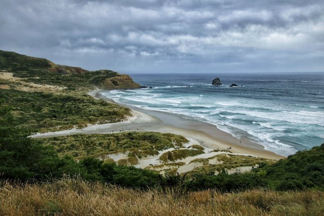 Weiter ging es dann über schöne Straßen an der neuseeländischen Küste entlang. Leider zog der Himmel auch ein bisschen zu, sodass wir eher fuhren, als an Stränden wanderten.