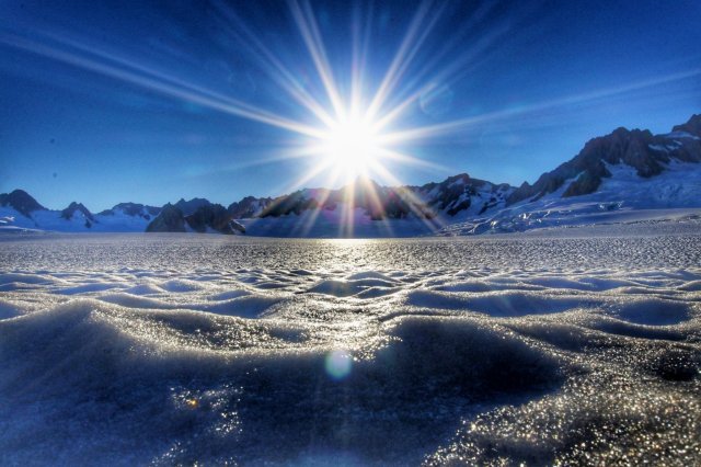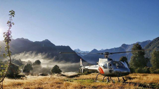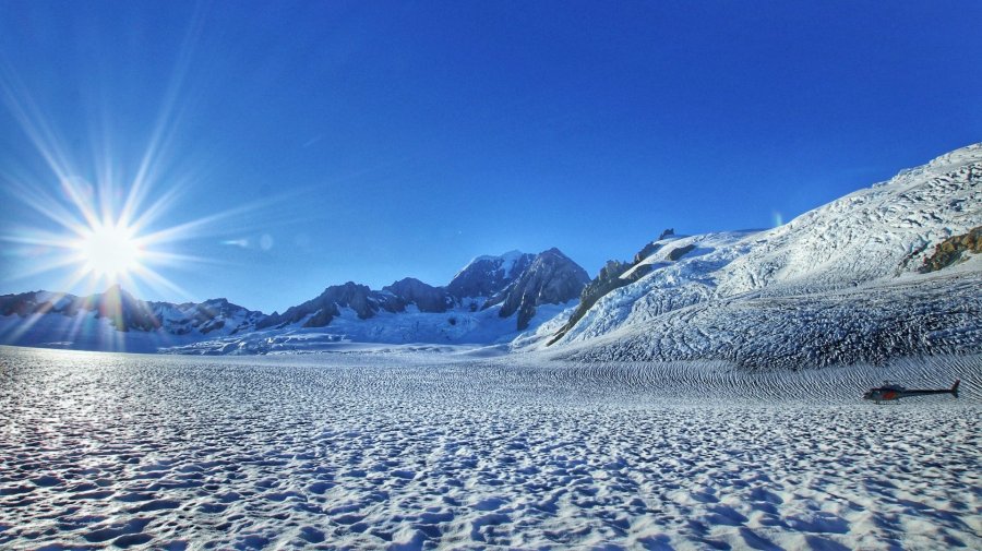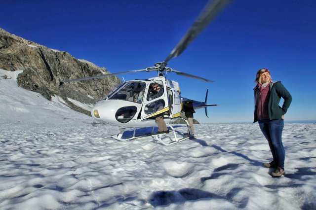 Nun gut, es muss wohl mal was passiert sein, dass es extra erwähnt werden muss – Darwin Award könnte grüßen lassen. Irgendwann, nach einer kurzen Busfahrt zum Helipad, ging es dann auch mit drei anderen Reisenden in die Luft. Einfach ein schönes Gefühl, wie sich so ein Fluggerät in die Luft schraubt. Für wunderbare Aussichten über die Gletscher Fox & Franz Josef sowie Mt. Cook & Mt. Tasman mussten wir dann auch nicht lange warten.