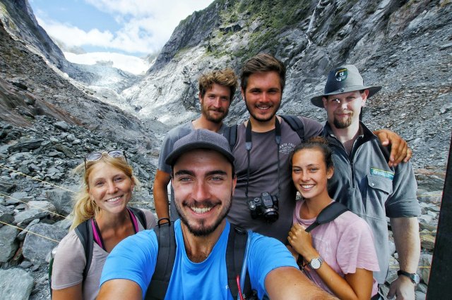 Doch dann, am Franz Josef Aussichtspunkt ereignete sich der nächste überraschende Zufall: wir trafen Maxine, Benji und Max wieder! Klar, dass das ein Selfie werden muss und auch klar, dass wir wieder bisschen zusammen Reisen!