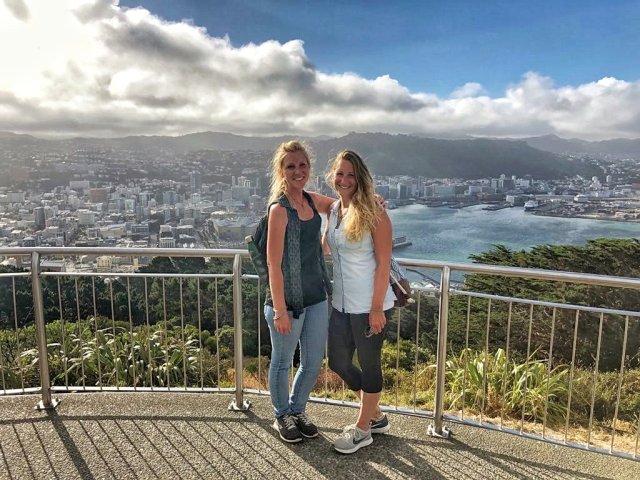 Bei Ankunft war nämlich klar, dass Lisa ihre Studienkollegin Micha treffen wird. Mit ihr sind wir dann auf den „Mount“ Victoria gelaufen, dem Aussichtspunkt über Welly. Leider war an diesem Abend das Wetter nicht das beste, die beiden hatten trotzdem ihre Freude: