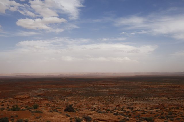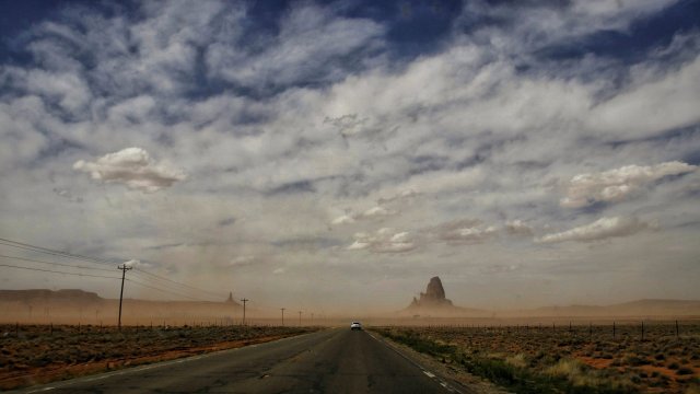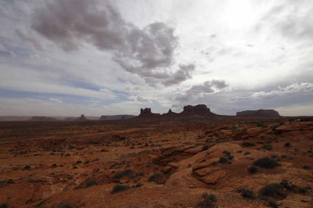 Irgendwie an der Grenze zwischen Arizona und Utah liegt dieses Tal im Navajo Reservat. Besonders bekannt ist es durch die solitären teils 300 Meter hohen Tafelberge. Insbesondere durch Film und Fernsehen kennt man diese Formationen, wie beispielsweise in der alten Malboro Werbung oder ertlichen Western Streifen. Doch bei der Anfahrt deutete sich ein Sandsturm am Horizont an, der zugleich das Projekt „Sonnenuntergang“ in Gefahr brachte.