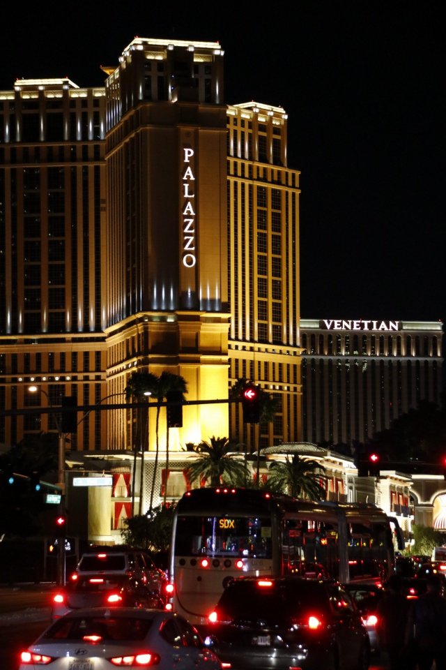 Doch erst nach Einbruch der Dunkelheit offenbart sich der ganze Charme des Strips, wenn die berühmten Casino szenisch beleuchtet werden. Wie z.B. das Palazzo: